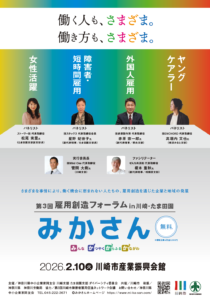 お世話になっております。ぜんち共済株式会社様より、研修のご案内がありましたので掲載いたします。詳しくはチラシまたは下記のURLをご覧ください。 当フォーラムは地域に根差す企業をはじめ、保護者、教育、福祉、行政、保健、医療の各関係者が集い、多様な人材や多様な雇用形態の具体事例を共有し「働く」ことを通して地域に住む人たちと企業が「共に育ち輝く」方法と実践を考えていきます。 ☆詳細およびご案内はこちらから↓(神奈川県)第3回雇用創造フォーラムみかさんin川崎・たま田園(2月10日開催) SHIRAISHIOSUKE2026-01-29T09:02:58+09:002026年 1月 29日 |お知らせ, お知らせ(イベント情報等)|(神奈川県)第3回雇用創造フォーラムみかさんin川崎・たま田園(2月10日開催) はコメントを受け付けていません